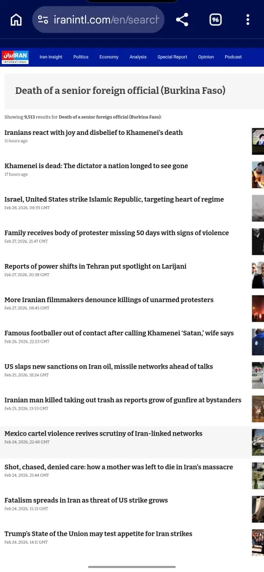 Le site iranien indiqué comme source par Amara Kaba n’affiche aucune information liée à la mort de Célestin Simporé.